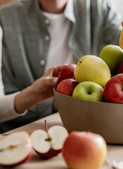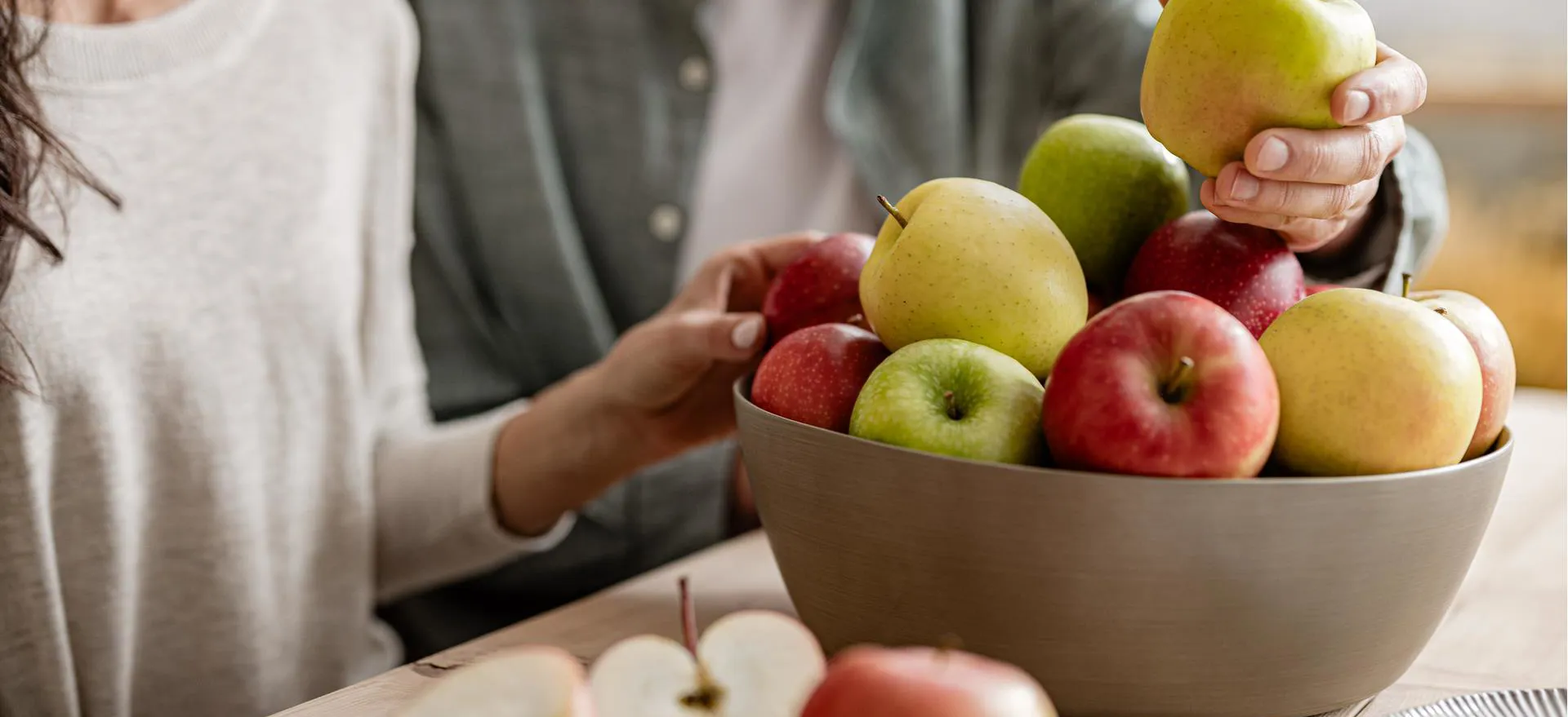 Los nutricionistas consideran la manzana un fruto con matrícula de honor, ya que es uno de los frutos con menor aporte calórico. De hecho, una manzana de tamaño mediano (200 gramos) aporta solo 89 calorías (fuente: Fundaciòn Espanola de la Nutricion). Esto se debe principalmente a su combinación de bajo contenido en grasas (0,2%) y alto contenido de agua, que representa más del 86% del peso de la fruta, lo que la hace extremadamente refrescante. El consumo de manzanas es, por lo tanto, especialmente útil para quienes no alcanzan fácilmente los dos litros de agua al día recomendados.